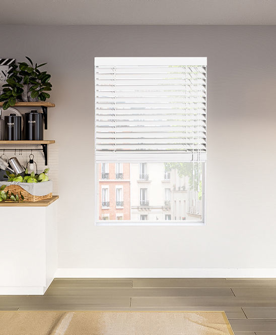 Persienner i aluminium med 50 mm lamellbredde egner seg spesielt godt til større vinduer, og gir effektiv regulering av sol og innsyn. De kan utformes for å passe inn i ethvert rom uansett stil, og de har lang levetid og tåler fukt, samtidig som de er enkle å rengjøre.