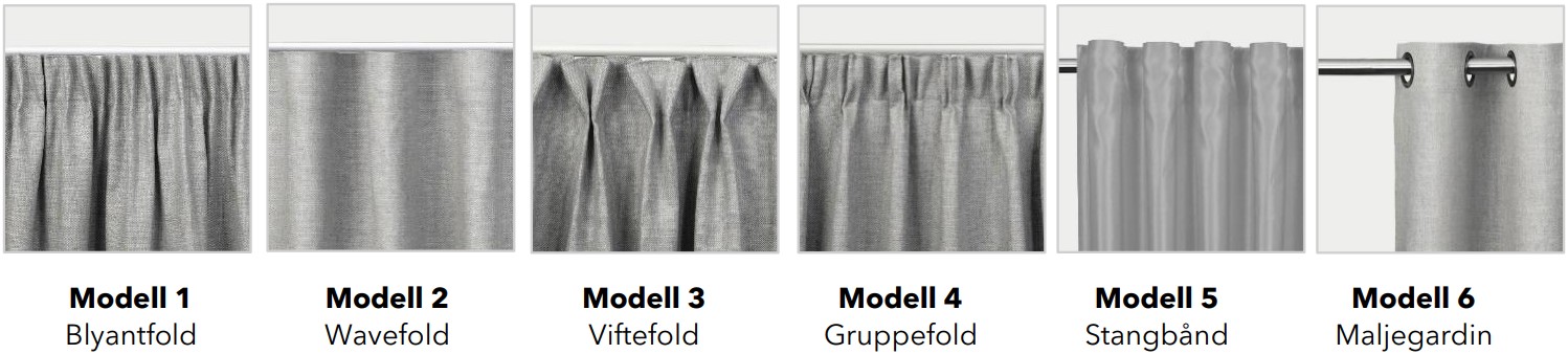 Angi hvilke type gardinhøyde som skal henge på stangen. Gardinhøyder med påsydd rynkebånd henges opp i gardinringer, som følger med i leveransen i riktig antall i forhold til stanglengde. Gardinhøyder med stangbånd eller maljegardiner leveres uten gardinringer.