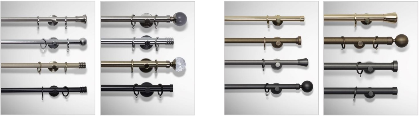 Velg blant ulike spyd som dekorelement i hver ende av stangen, som leveres i samme farge. Lengden på endedekoren kommer i tillegg til stanglengden.